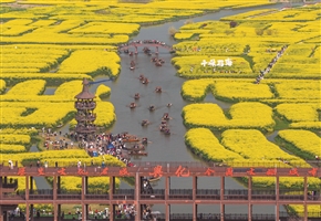 图③为4月4日,游客在江苏省兴化市千垛景区赏花游玩(无人机照片)。