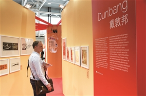 4月13日,在意大利博洛尼亚举行的博洛尼亚国际童书展上,观众参观中国展区。