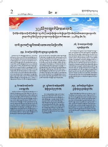 སྤུས་ཚད་ཨང་དང་པོར་འཛིན་རྒྱུ་རྒྱུན་འཁྱོངས་དང་། ཤར་བྱང་གི་ས་ནག་ས་ཁུལ་དང་བདེ་ཐང་ས་ཁུལ། ཆུ་བེད་ཆུ་འདྲེན་གྱི་ཆ་རྐྱེན་ལྡན་པའི་ས་ཁུལ་བཅས་ཀྱི་རྨོ་ཞིང་དམིགས་སུ་བཟུང་ནས་ཚད་གཞི་མཐོ་བའི་ཞིང་ཁ་འཛུགས་སྐྲུན་བྱེད་པ་དང་། ཀྲུང་དབྱང་དང་ཞིང་ཆེན་རིམ་པའི་མ་འཇོག་ཁ་གསབ་རོགས་སྐྱོར་ཆུ་ཚད་འོས་འཚམ་གྱིས་ཇེ་མཐོར་གཏོང་བ། ས་གནས་སོ་སོས་འབྲུ་རིགས་ཐོན་སྐྱེད་རྫོང་ཆེན་ལ་མ་དངུལ་ཆ་སྡེབ་བྱེད་པའི་བླང་བྱ་མེད་པར་བཟོ་བ། ཚད་གཞི་མཐོ་བའི་ཞིང་ཁ་འཛུགས་སྐྲུན་གྱི་གོ་རིམ་ཡོངས་ལ་ལྟ་སྐུལ་དོ་དམ་བྱེད་པར་ཤུགས་སྣོན་རྒྱག་པ་བཅས་བྱས་ནས་འཛུགས་སྐྲུན་བྱས་པ་ཐམས་ཅད་ལེགས་འགྲུབ་ཡོང་བའི་འགན་ལེན་བྱེད་དགོས། གྲོང་གསེབ་ཀྱི་མཉམ་སྡེབ་དཔལ་འབྱོར་རྩ་འཛུགས་དང་ཞིང་ལས་གསར་པའི་ལས་གཉེར་གཙོ་གཞི། ཞིང་ཁྱིམ་བཅས་ཀྱིས་ཐད་ཀར་ཚད་གཞི་མཐོ་བའི་ཞིང་ཁ་འཛུགས་སྐྲུན་དང་བདག་སྐྱོང་ཁྲོད་ཞུགས་པར་སྐུལ་མ་གཏོང་དགོས། ས་ཁུལ་དང་རིགས་དབྱེ་ནས་བ་ཚྭ་ཅན་གྱི་རྨོ་ཞིང་བཅོས་སྐྱོང་དང་ལེགས་བསྒྱུར་བྱེད་པ་དང་།“ས་བོན་ལ་བརྟེན་ནས་ཞིང་ཁ་འདེབས་པ”དེ“ཞིང་སར་བརྟེན་ནས་སོ་ནམ་བྱེད་རྒྱུ”དང་ཟུང་འབྲེལ་བྱས་ཏེ། བ་ཚྭ་ཅན་གྱི་ཞིང་ཁ་ཕྱོགས་བསྡུས་བེད་སྤྱོད་དང་ཚོད་ལྟ་བྱེད་པར་རྒྱབ་སྐྱོར་བྱེད་དགོས། གཙོ་གནད་ཆུ་ཁུངས་དང་ཆུ་འདྲེན་ཁུལ། ཆུ་ལོག་གསོག་ཁུལ་བཅས་འཛུགས་སྐྲུན་དང་དེང་རབས་ཅན་དུ་བསྒྱུར་བཅོས་བྱེད་པར་སྐུལ་འདེད་བཏང་སྟེ། ཆུ་མཛོད་ཀྱི་ཉེན་སེལ་སྲ་བརྟན་དང་ཆུ་བོ་འབྲིང་ཆུང་བཅོས་སྐྱོང་། ཆུ་མཛོད་འབྲིང་ཆུང་འཛུགས་སྐྲུན་བྱེད་པ་སོགས་ཀྱི་རྣམ་གྲངས་ལག་བསྟར་བྱེད་དགོས། ཞིང་ཁ་ཆུང་གྲས་ཀྱི་ཆུ་བེད་སྒྲིག་བཀོད་འཛུགས་སྐྲུན་དང་བདག་སྐྱོང་ལ་ཤུགས་སྣོན་རྒྱག་དགོས། གནོད་འཚེ་ཕོག་ཁུལ་ས་ཁུལ་གྱི་གེགས་རྗེས་སླར་གསོ་བསྐྱར་སྐྲུན་ལ་མགྱོགས་མྱུར་སྐུལ་འདེད་གཏོང་དགོས། གནམ་གཤིས་གནོད་སྐྱོན་གྱི་དུས་ཐུང་སྔོན་བརྡ་དང་དུས་ཡུན་རིང་འབྲིང་གི་འཕེལ་ཕྱོགས་ལ་ཞིབ་འཇུག་དང་བརྡར་ཤ་གཅོད་པར་ཤུགས་བརྒྱབ་ནས། ཞིང་ལས་གནོད་འགོག་གེགས་སེལ་དང་གནོད་སྐྱོབ་ཀྱི་ཕུགས་ཕན་ལམ་སྲོལ་འཐུས་ཚང་དུ་གཏོང་དགོས། སྒྲིག་བཀོད་ཞིང་ལས་དེང་རབས་ཅན་དུ་མཐོར་འདེགས་གཏོང་བའི་བྱ་སྤྱོད་ལ་སྐུལ་འདེད་བྱེད་དགོས།