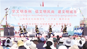མདུན་ངོས་ཐང་ཆེན་གྱི་གར་སྟེགས་ཐོག་རིག་གནས་སྟོན་མོ་བཤམས། གར་སྟེགས་གཤམ་འོག་ཏུ་སྒྲོག་འགྲེལ་པས་ངོ་ཐུག་གདོང་ཐུག་གིས་ཤེས་དཔལ་སྲོལ་ཡིག་དྲིལ་བསྒྲགས་བྱེད། ཟླ་6ཚེས་13ཉིན། ཤེས་དཔལ་སྲོལ་ཡིག་སློབ་སྦྱོང་བྱས་ནས་ཤེས་དཔལ་སྲོལ་བཟང་དར་སྤེལ་གྱིས་ཤེས་དཔལ་གྲོང་ཁྱེར་བསྐྲུན་དགོས་ཞེས་པ་བརྗོད་བྱ་གཙོ་བོར་བྱས་པའི་ལྷོ་ཁ་གྲོང་ཁྱེར་གྱི་རིག་གནས་དང་ཚན་རྩལ། འཕྲོད་བསྟེན་བཅས་གཤམ་སྤེལ་གསུམ་གྱི་གཅིག་སྡུད་དཔེ་སྟོན་དང་། 《ལྷོ་ཁ་གྲོང་ཁྱེར་གྱི་ཤེས་དཔལ་བྱ་སྤྱོད་ལ་སྐུལ་སྤེལ་གཏོང་བའི་སྲོལ་ཡིག》གི་གཅིག་སྡུད་དྲིལ་བསྒྲགས་བྱེད་སྒོ་དེ་གྲ་ནང་རྫོང་དུ་སྤེལ་བ་རེད།