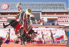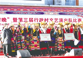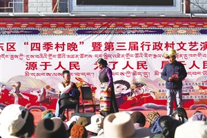 ཞི་ཅིན་ཕིང་གི་རིག་གནས་དགོངས་པ་ལག་བསྟར་མཐར་ཕྱིན་བྱས་ནས་གཞི་རིམ་ལས་བྱེད་མང་ཚོགས་ཀྱི་བསམ་བློ་དང་རིག་གནས་འཚོ་བ་རྒྱུན་ཆད་མེད་པར་ཕུན་སུམ་ཚོགས་སུ་གཏོང་ཆེད། ཟླ་12ཚེས་11ཉིན། སྣེ་གདོང་ཆུས་ཀྱི་དུས་བཞིའི་གྲོང་ཚོའི་མཚན་ཚོགས་དང་སྲིད་འཛིན་གྲོང་ཚོའི་རིག་རྩལ་འཁྲབ་སྟོན་རུ་ཁག་གི་འགྲན་བསྡུར་སྐབས་གསུམ་པ་དེ་བཀྲ་ཤིས་མཆོད་རྟེན་སྡེ་ཁུལ་གྱི་ཐང་ཆེན་དུ་འཚོགས་པ་རེད།