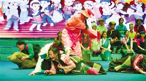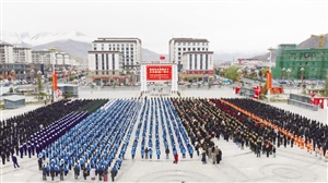 དེ་ཉིན་གྲོང་ཁྱེར་ནས་གྲོང་གསེབ་བར་དང་། སློབ་གྲྭ་ནས་འབྲོག་རའི་བར། ལས་ཁུངས་ནས་གཞི་རིམ་བར་བཅས་མི་རིགས་ཁག་གི་ལས་བྱེད་པ་དང་མང་ཚོགས་ཚོས་དེ་བས་དཔའ་ངར་ཆེར་སྐྱེད་ཀྱིས་སྤྱི་ཚོགས་རིང་ལུགས་དེང་རབས་ཅན་གྱི་བོད་ལྗོངས་གསར་པ་སྐྲུན་པའི་རྒྱང་ལམ་དུ་འབད་འབུངས་མདུན་སྐྱོད་བྱེད་བཞིན་མཆིས།